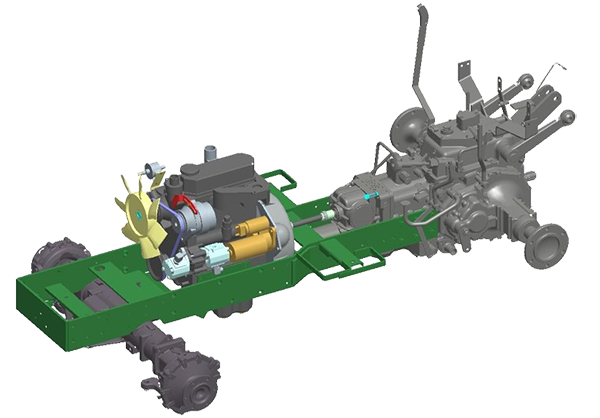 The tractor weight of 865kg is a reflection of the heavy duty transmission, driveline and axles. The tractor weight is, in part, a result of the heavy front axle, which is important for a tractor fitted with a front end loader as substantial loads are applied during loader operation. The high efficiency two range (2) hydrostatic transmission gives infinitely variable drive speed from stationary to 16km/h in the forward and reverse direction.
