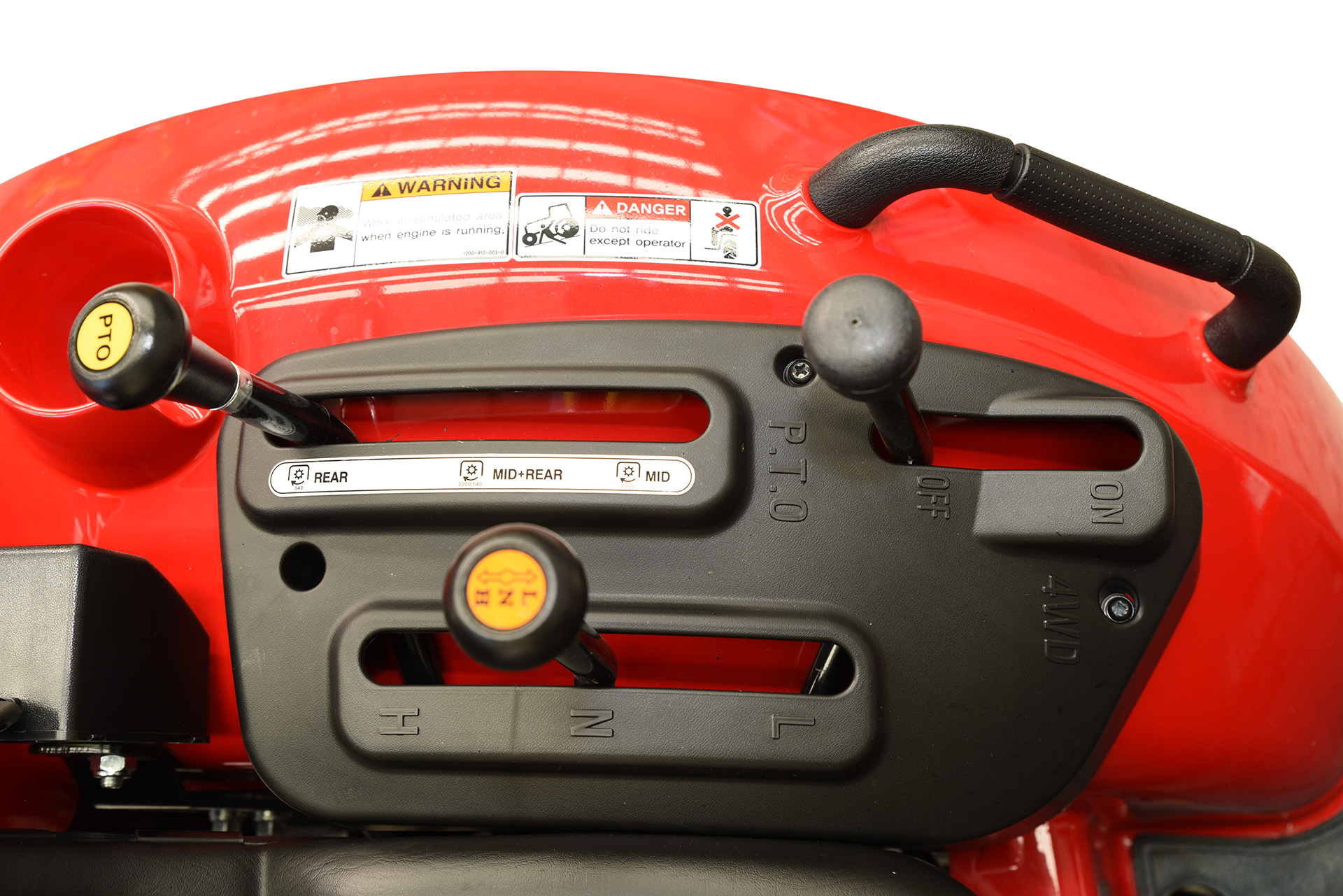 The operator’s area features an ergonomic layout with easy-to-reach controls and a clear instrument panel. A combination switch, cruise control, and push-button PTO on/off switch further enhance ease and efficiency of operation.